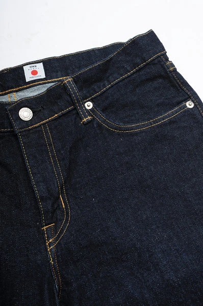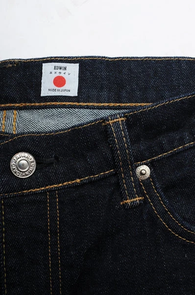 The Classic Edwin Jean. A regular tapered fit with a mid-rise at the front and high rise at the back. Due to it’s versatility it can be worn in many different ways and suits a wide range of body shapes. A must have in any wardrobe! -13oz Denim, softer feel -Blue rinsed (Dark indigo wash) -Regular Fit -Tapered Leg -Edwin leather patch on back L30:W30 L30:W31 L30:W32 L30:W33 L30:W34 L30:W36 Waist (inches) 31 32 33 34 35 36 Inside Leg (inches) 30 30 30 30 30 30 Front Rise (inches) 10 10 10.5 10.5 11 11 Hem (inches) 6.5 6.5 6.5 7 7 7.5 100% Cotton Wash separately and inside out. Colour may transfer. Machine wash at 40. Do not tumble dry. Do not bleach. Do not dry clean. Do not bleach. Dry naturally. Dry Flat. Made in Japan I029404-01.02.32